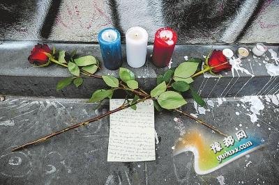 11月14日,人们在法国巴黎共和国广场点燃蜡烛、摆放鲜花,悼念恐怖袭击事件遇难者。 新华社发