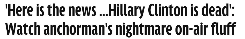 一则美媒标题写道:“接下来这则新闻...希拉里已经去世”:看主持人直播出错。