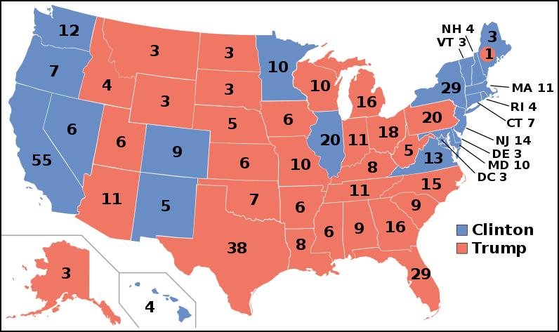 根据11月8日的投票结果,选举人将于12月19日投票选出总统,走完程序。但选举人也可以不遵循本州投票结果,自行决定把票投给谁。这种选举人被称为“不忠选举人”,但各州普遍没有对“不忠选举人”的强制性惩罚措施。10日,有人在美国知名请愿网站“改变”(change.org)上发起联署,要求选举人改投希拉里。截至24日,签名已超461万。