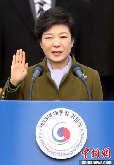 当地时间2013年2月25日,在就任仪式上宣誓就职的朴槿惠。CFP视觉中国