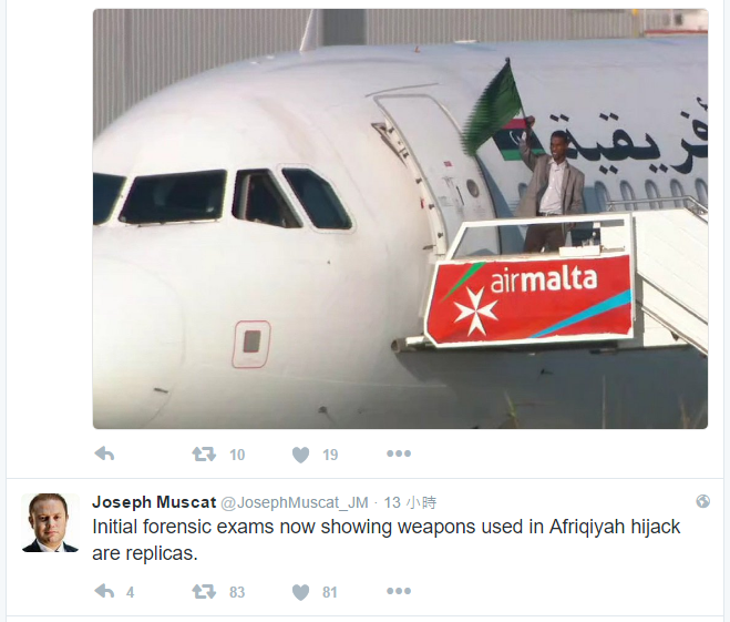 《马耳他总理:劫持利比亚飞机者使用的武器为模型》由河南新闻网-豫都网提供,转载请注明出处:http://news.yuduxx.com/hqsy/782541.html,谢谢合作!