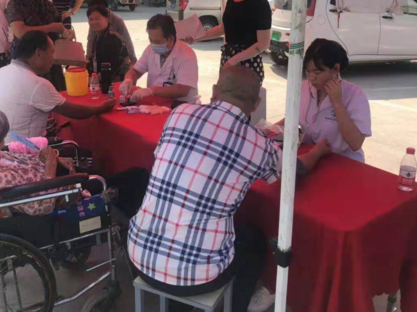 此次义诊活动提供免费量血压、疾病咨询、健康讲座等服务。前来问诊的居民络绎不绝,社区居民有的排队量血压,有的排队咨询健康知识,我院党员义诊队医护人员们也都非常认真、投入、尽心尽责为前来问诊的居民的朋友答疑解忧。