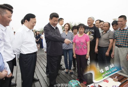 26日下午,习近平来到位于钱塘江边的杭州钱江新城城市阳台考察新城建设情况。正在这里休闲的市民看到总书记来了,热情围拢过来打招呼。习近平一边同大家握手一边说:杭州这个地方环境多好啊,我离开浙江时这片还没有建起来。他询问大家住得远不远,平时来这里有些什么活动,祝市民们身体健康、生活愉快。一位上了年纪的市民对习近平说,我喜欢读你的《之江新语》。习近平对她说,那是每天写下的三言两语的感受,在报纸上登出来,后来汇集成册了。(图片来自新华社“新华视点”微博)