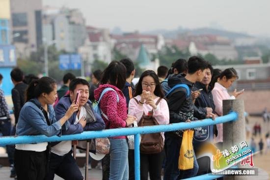 ????10月01日,山东省青岛市,国庆长假第一天迎客流高峰,前海各景区游客爆棚,海内外游人纷纷前来亲近大海,乐享假日。黄杰显摄 图片来源:CFP视觉中国??