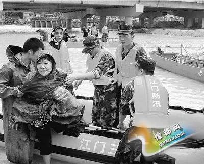 5日,广东江门市边防官兵解救被洪水围困的群众。 廖键摄(人民视觉)
