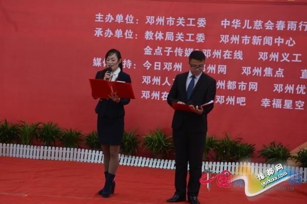 核心提示:在邓州市市委、市政府的关心下,11月14日,邓州市关工委、中华儿慈会春雨行动邓州理事会主办的“播撒春雨、放飞梦想----为留守儿童圆梦活动”仪式,在邓州市古城广场幸福启动。