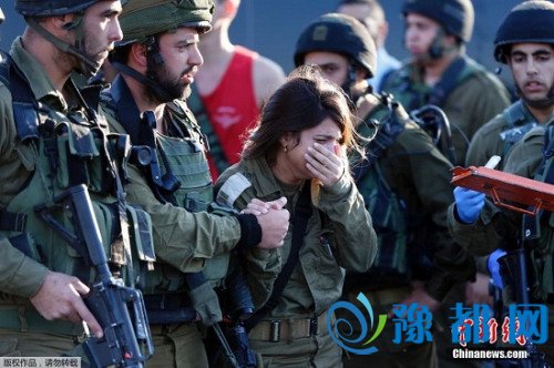 当地时间11月23日,一名以色列女兵在约旦河西岸遭刺杀,其同僚在遇难者葬礼上哭泣。