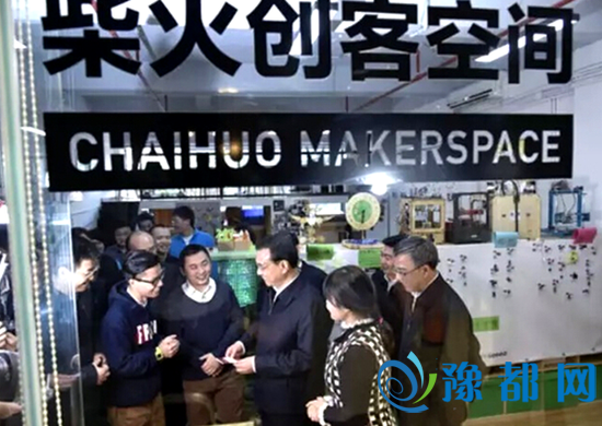 2015年1月4日,李克强在考察深圳柴火创客空间(中新社记者刘震摄)