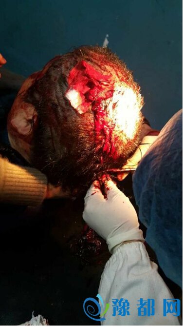 受害人胡先生医院头颅被砍破实景图(图片由当事人提供)