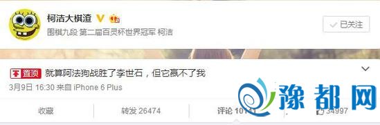 《中国棋手柯洁:"机器人"赢得了李世石赢不了我》由河南新闻网-豫都网提供,转载请注明出处:http://news.yuduxx.com/jdxw/397546.html,谢谢合作!