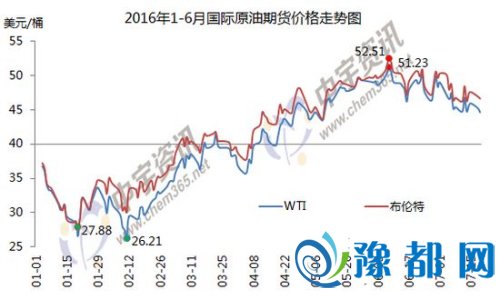 1-6月国际原油期货价格走势图。来源:中宇资讯。