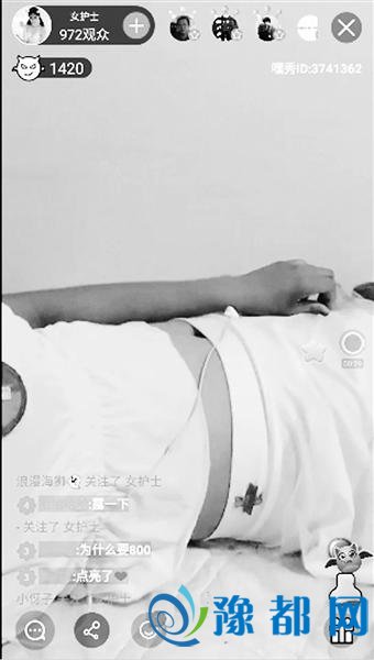 7月27日零点左右,北青报记者登录“嘿秀”平台,随机进入一间主播昵称为“女护士”的直播间。直播页面显示约有1000人在线观看,直播间内,女主播身着“护士”制服躺在床上,其间,她回复房间内的观众问题时表示,“肯定露啊,但不是在这里,是在QQ群里”,并留下QQ群号码。随后,女主播在直播时不断重复称:QQ群满800人开播,保证主播本人大尺度表演。