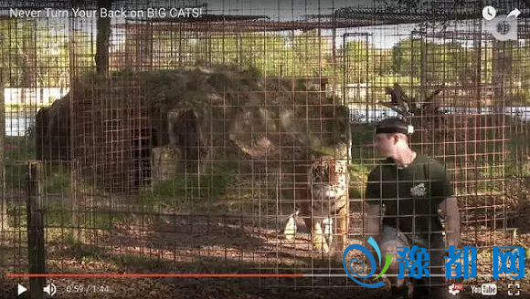 不仅在中国,美国动物园老虎等大型猫科动物吃人事件也曾上演。为了告诉人们“背对猫科动物”这一动作究竟有多么危险,关在笼子里的老虎一样“会吃人”。美国佛罗里达州坦帕(Tampa)的猫科动物保护组织“大型猫科动物救援(Big Cat Rescue),特地请来了专业的饲养员在笼外做“背对”实验,希望通过摄像机记录下的这惊现一刻,能让你真正的警醒!