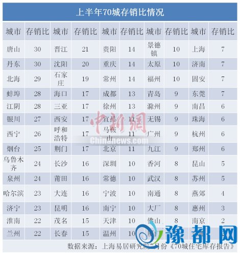 中新网记者查阅上海易居房地产研究院提供的7月份《70城住宅库存报告》发现,上述城市中部分城市住宅库存并不低。按照上半年市场消化速度,乌鲁木齐、哈尔滨库存分别可卖24月、23个月。而市场一般认为较为合理的情况是14个月左右。