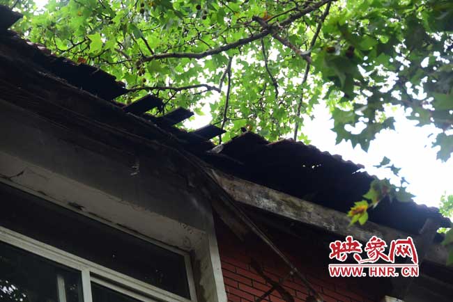 在三楼,河南省第一建筑工程集团有限责任公司物业管理分公司两位工作人员称,房顶不安全,他们早在两个月前向上级部门打了报告。