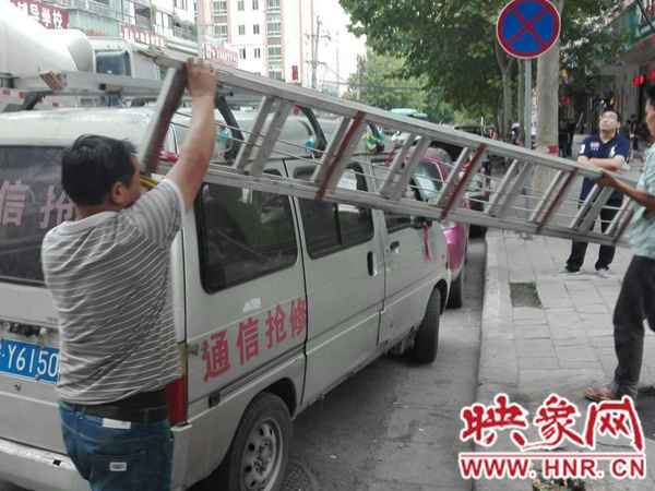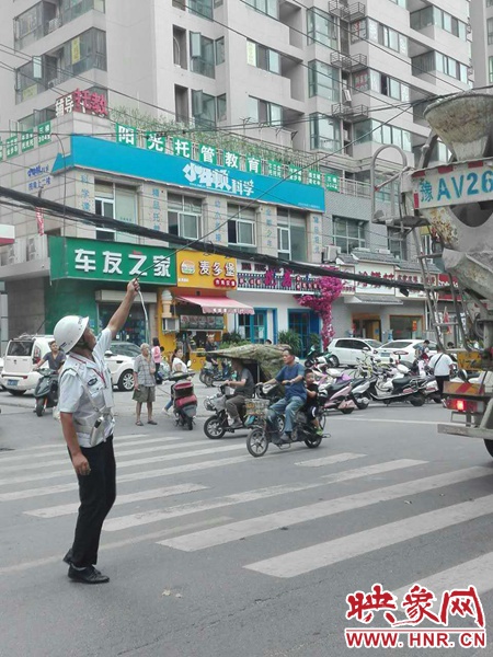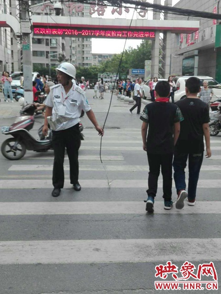 映象网快讯(记者 邱延波 文/图)9月8日下午,郑州市政通路上,一捆线缆被一辆水泥罐车挂断,影响车辆正常通行。为保证车辆正常通行,避免交通阻塞,附近的巡防队员立即拨打电话通知电信部门前来抢修,在电信部门到来前,巡防队员一直用托举线缆让车辆通行。