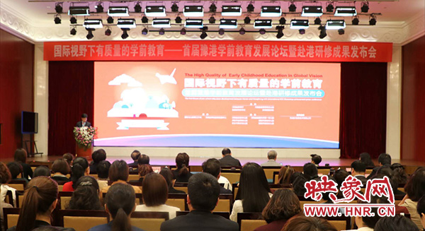 映象网讯(记者 王韶卿 文/图)3月31日,河南省首届豫港学前教育发展论坛暨赴港研修成果发布会在郑州举行。河南省政府港澳事务办巡视员郭俊峰、河南省教育厅副巡视员张涛、香港学前教育专家,各省辖市、直管县教育局学前教育管理干部,以及河南省300余名省级示范幼儿园园长参加会议。