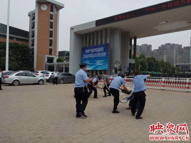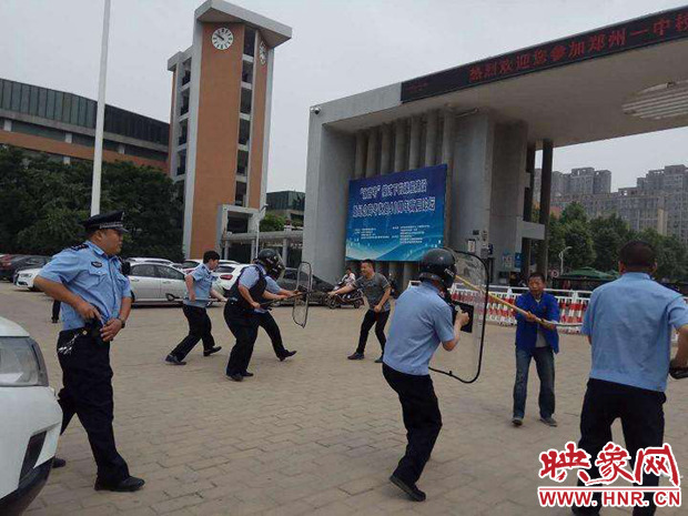 映象网(记者 王韶卿 通讯员 李东旭)为进一步提高处置突发事件的水平,提升队伍实战能力,扎实做好2018高考期间应急处突工作, 5月30日上午,郑州市公安局须水分局组织警力在郑州中原西路郑州一中门口开展了突发暴力警情演练。