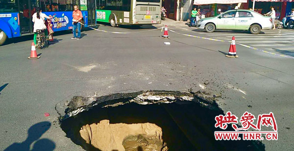 据悉,接到信息后郑州市城市管理局市政工程管理处应急处置人员第一时间赶到现场,设置安全标志,配合交警做好疏导工作,同时配合公交部门将车辆脱离现场,初步判断原因是污水管道漏水冲刷路基产生地下空洞引发路面塌陷。