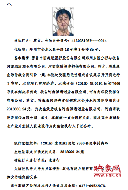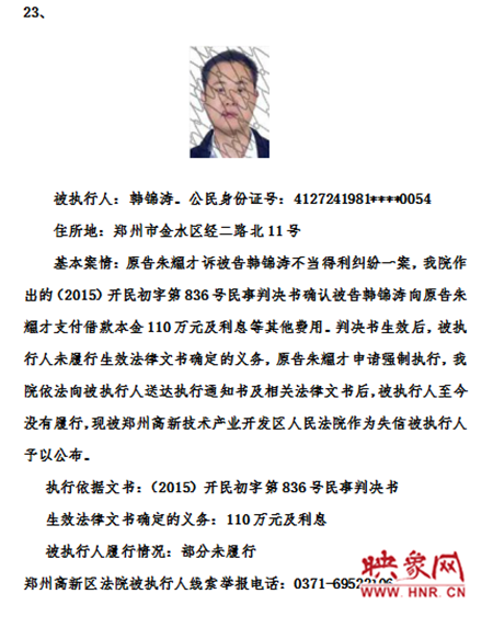 《郑州高新区法院曝光第三批“老赖”名单 看看哪30个人上榜!》由河南新闻网-豫都网提供,转载请注明出处:http://news.yuduxx.com/jdxw/746170.html,谢谢合作!
