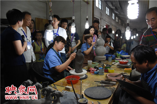 在“玉松汝瓷”第二代掌门人李晓涓的带领下,网友们走进“玉松汝瓷”的车间,从选料到拉胚,从雕花到施釉,从入窑到烧制……最让大家兴奋的是,有幸目睹开窑这一神圣的过程。面对刚刚出炉的汝瓷,细细的裂片声萦绕在耳际,神奇无比。