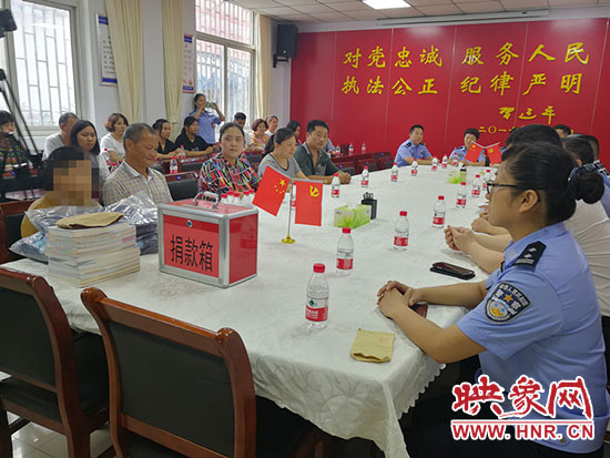 映象网讯(记者 王韶卿 实习生 许梦欣 通讯员 李东亚)7月24日,郑州市公安局嵩山路分局治安管理服务大队三中队驻地,举行着一场特殊的捐赠助学仪式,郑州市二七区一名11岁父母双亡的“黑户”孤儿,被公安民警、街道办事处工作人员、人大代表、爱心企业家、学校老师、热心居民围着,大家争相用不同形式为孤儿王成(化名)捐资捐物献上爱心,帮助他继续生活、完成学业,动人的场面融化了在场每一个人的心。