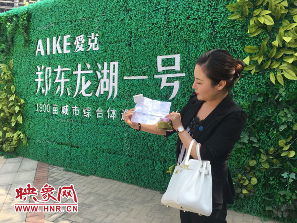 映象网讯(记者 邱延波 文/图)诚,信也,意谓对待人们要诚实讲信用,不搞鬼鬼祟祟的把戏和阴谋诡计。郑州张女士为了购买郑东龙湖一号小区的房子,先交了10万元诚意金,又交了1万元储藏室定金,等待开发商办下预售证后与自己签订正式购房合同。然而,开发商却在张女士没有接到任何通知的情况下,将房子卖给了别人,涉嫌一房两卖。