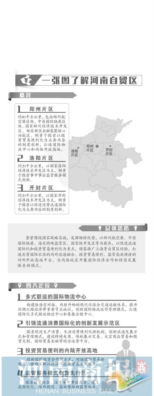 会上还首度披露了河南省申建自贸区的片区范围和功能定位,包括郑汴洛三个片区,面积约120平方公里。