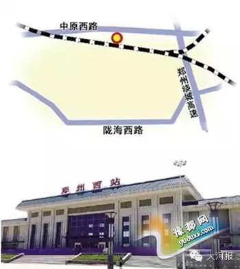郑州高铁西站位于荥阳豫龙镇境内,东距郑州市区西三环15公里,距西南绕城高速2公里,南距陇海西路2公里,北邻中原西路500米,距广武桃花峪跨黄河公路大桥25公里,西距上街区15公里。