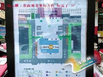 火车站东广场南侧这块指示牌坐标方向错了