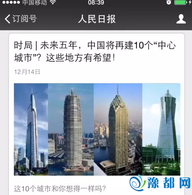《人民日报微信:中国将再建10个中心城市 郑州有希望》由河南新闻网-豫都网提供,转载请注明出处:http://news.yuduxx.com/mszx/329868.html,谢谢合作!