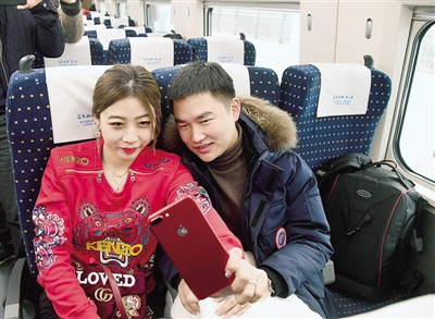 数据显示,G2203次列车28日上座率达75%,首次开通,这个数据相当喜人,同样,首次乘坐这趟列车的不少乘客也是喜气洋洋。