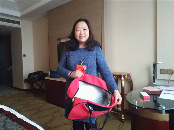 在和蒋平的交谈中,记者了解到,其实她带这个空包是有原因的,因为之前当人大代表来参加人代会的时候,每次回去都会发很多的会议文字材料,走的时候刚好就可以用这个手提包把会上所发的文字材料带了。对于几年前来郑州参加省人代会时的情形,蒋平依然记忆犹新,每次回去她的这个红色的帆布包里都会装满文字材料。