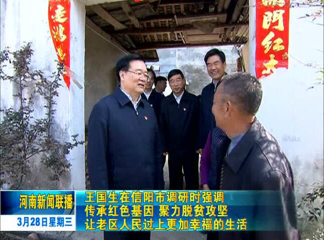 3月27日至28日,省委书记王国生到信阳市调研,深入光山县、新县,察民情、看产业,与干部群众共话基层党建、推进脱贫攻坚。
