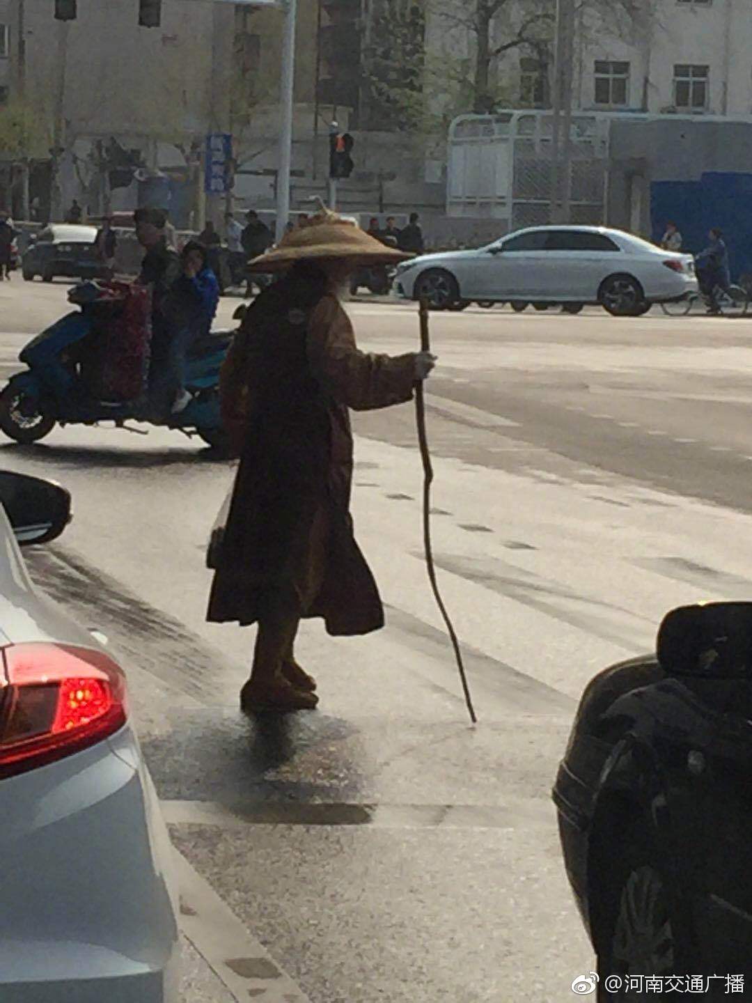 【郑州街头惊现“姜子牙”,仙气逼人!】大老远穿越过来,辛苦啦!过马路可要注意安全啊!