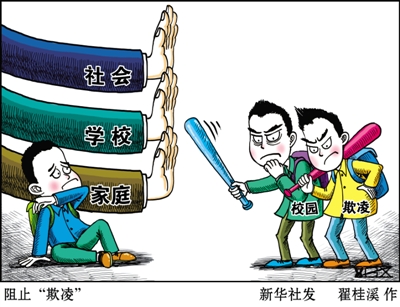 方案提出,市、县(区)教育行政部门要明确具体负责防治学生欺凌工作科室并向社会公布,学校须根据实际情况成立由校长负责,教师、少先队大中队辅导员、教职工、社区工作者和家长代表、校外专家等人员组成的学生欺凌治理委员会(高中阶段学校还应吸纳学生代表),学校家庭社会“三位一体”妥善处理学生欺凌重大事件。