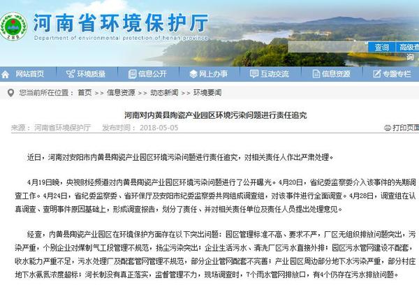 近日,河南对安阳市内黄县陶瓷产业园区环境污染问题进行责任追究,对相关责任人作出严肃处理。