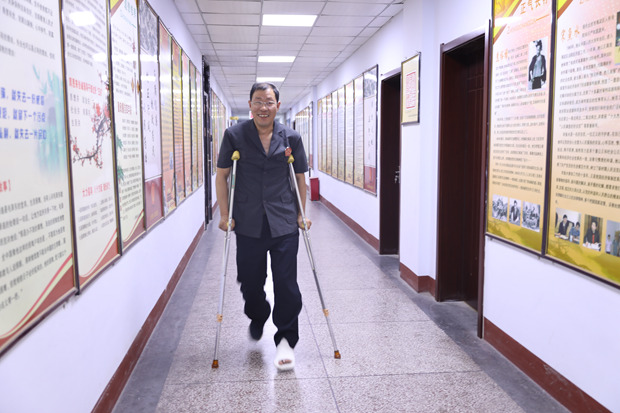 坐在审判庭上开庭的法官应该是什么样子的?相信大家首先想到的词语应该是:正襟危坐、严肃庄严。2018年5月29日上午,河南省郑州市上街区人民法院第七审判庭里却走来一位拄着双拐,腿部打着石膏的法官。
