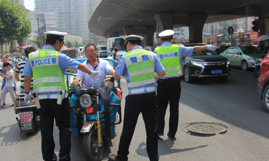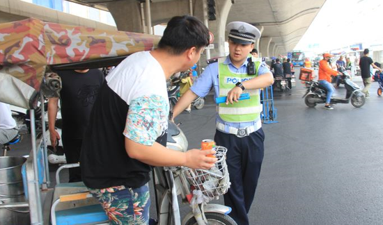 为进一步加强对非法营运三轮车、客货混装、私自改装手推车等违法行为的治理,同时也为迎接端午节创造银基商圈的良好交通秩序条件,6月14日郑州交警三大队车站中队抽调警力在陇海路钱塘路口针对银基商圈的各种交通违法行为进行全面查处。