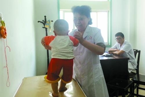 进入诊室,万国兰刚换好衣服坐下,一位年轻女子就抱着孩子进入,“给俺孩儿看看吧,你看他现在11个月大了,但不会坐,也不会爬。”