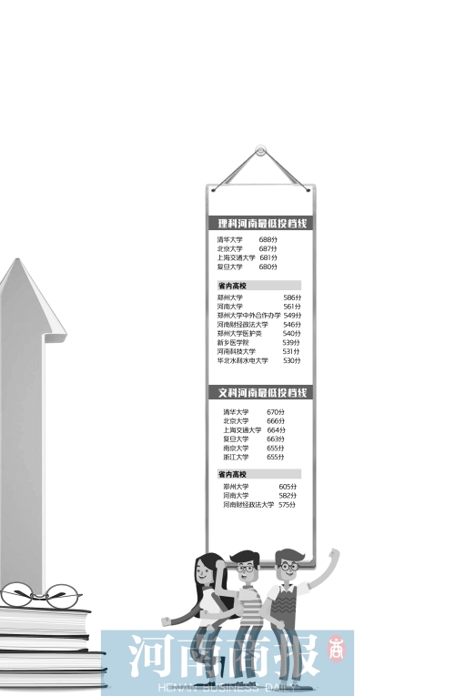 河南商报记者了解到,文科生源充足且投档最低分较高的省内院校有:郑州大学605分、郑州大学(中外合作办学)582分、河南大学582分、河南财经政法大学575分。