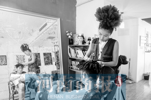 今年23岁的吴囍儿,去年到北京学习脏辫、非洲辫等发型设计后,回到郑州成立了自己的私人工作室。