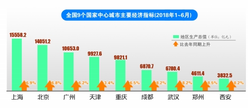 也就是说,在九大国家中心城市中,郑州上半年GDP位居第8位,仅高于西安。
