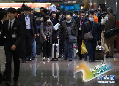 2月5日,台湾复兴航空班机坠河事故部分大陆乘客家属乘坐ae992航班抵达台北桃园机场。 新华社记者 金立旺 摄