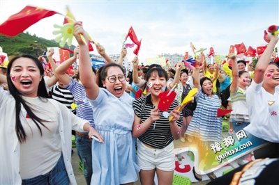 延庆摇旗延庆八达岭长城脚下望京广场,申冬奥成功后,前来庆祝的人们摇旗欢呼。 新京报记者 尹亚飞 摄