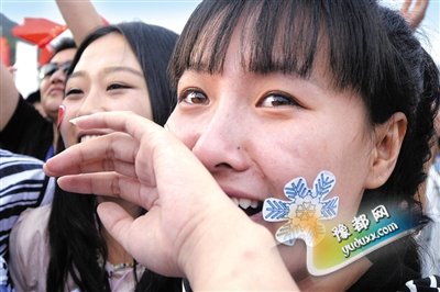 张家口流泪一女孩得知北京携张家口申冬奥成功后,激动得几乎流泪。新京报记者 王嘉宁 摄