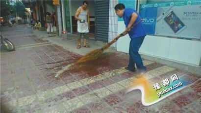 崔先生是事发当地一家五金店的老板,他见证了事发的整个经过,而周某手中所持的两把菜刀正是在他店中抢夺的。“开始他在我店子外面的椅子上坐,我当时就进去做生意了,出来时看到他已经把我店子里面两把菜刀拿在手中,在除去菜刀外的包装纸,我喊他把我的刀放下,但他没理我。”崔先生告诉记者,两名民警走过来,让周某放下手中刀,结果他就冲过去追撵民警,追了有几十米才回来。