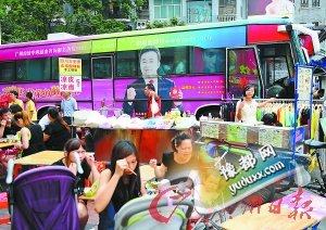 上下九的采血车被小摊贩包围(资料图片)。广州日报记者乔军伟摄广州七成血液来自街头采集 但目前仅10个固定献血点
