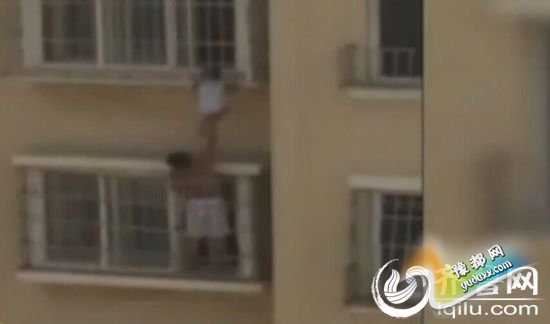 据山东广播电视台齐鲁频道《每日新闻》报道,当日下午一点多,一个三岁的男童在四楼的窗边玩耍时,不慎滑落,只有头部还卡在防盗窗上;情况十分危急。