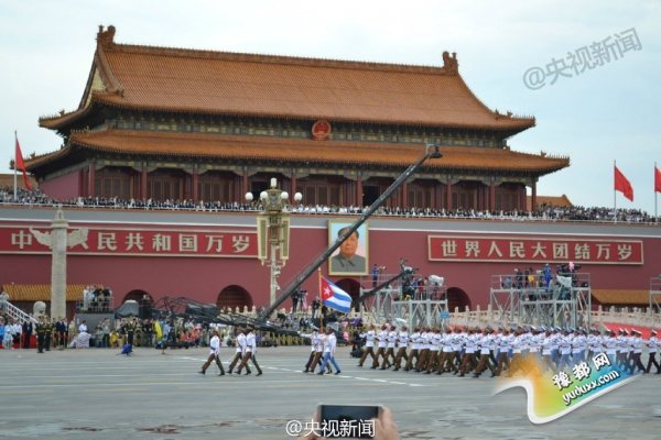 从今天的央视画面上可以看到,除了观察者网此前报道的俄罗斯、白俄罗斯、哈萨克斯坦、吉尔吉斯坦、蒙古五国,其他派出方阵参加阅兵的国家包括亚洲的阿塞拜疆、柬埔寨、巴基斯坦、塔吉克斯坦等,欧洲的塞尔维亚,非洲的埃及,大洋洲的斐济和瓦努阿图,美洲的古巴、墨西哥等。
